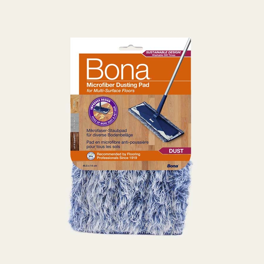 The Bona Dusting Pad is a fluffy, white microfibre pad with super electrostatic action. Attaches to the Bona Wood Floor Mop for dry cleaning of the floor prior to cleaning with Bona Wood Floor Cleaner and Mop. Easily attached to the Bona Mop with Velcro-like strips this dusting pad is an excellent way of picking up dust and hair before wet-mopping your floors.