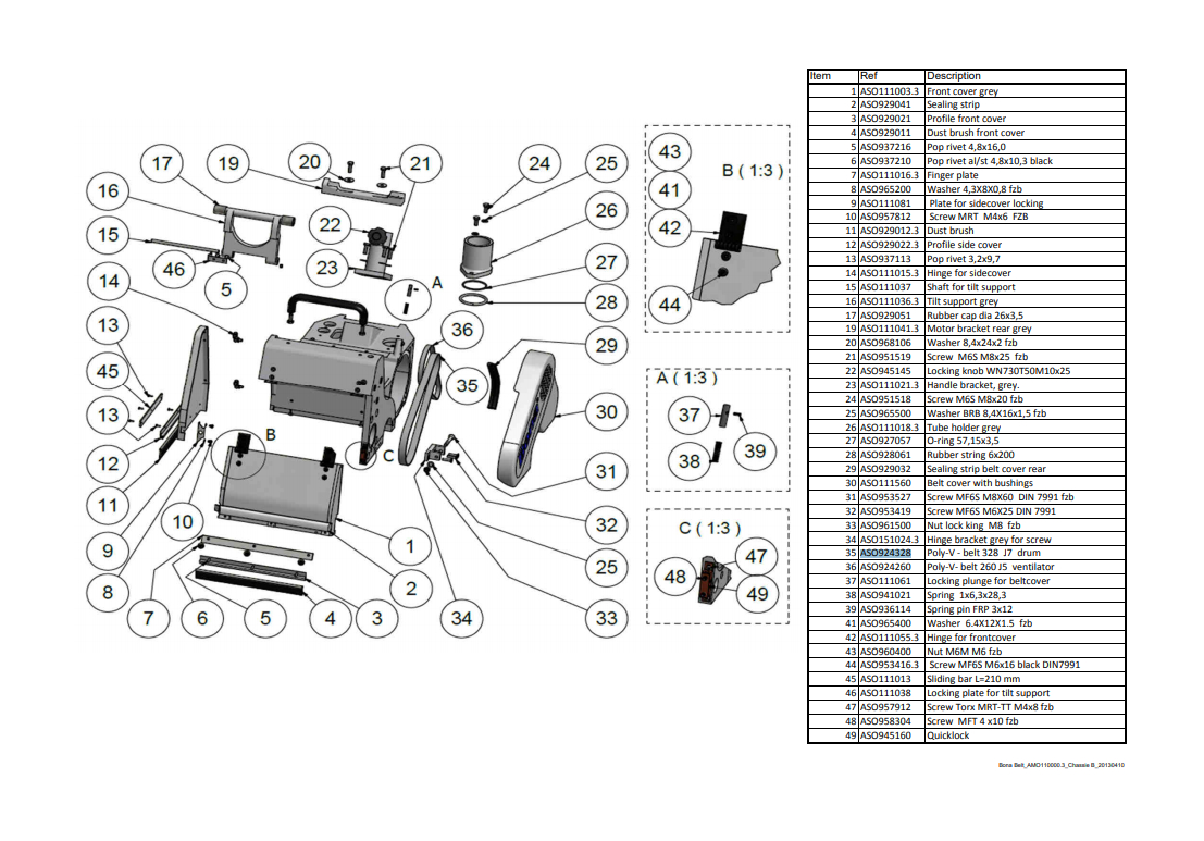 Poly-V-Belt 260 for Bona Belt Floor Sander, J5, Ventilator
